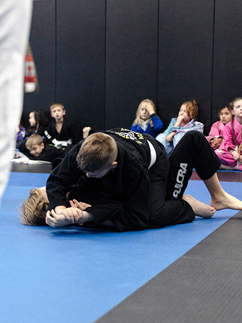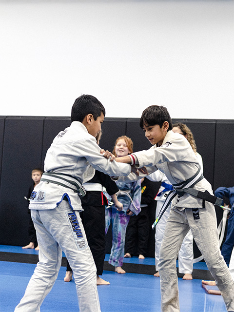 Introduces Jiu-Jitsu through dynamic warm-ups, fun games, and confidence-building activities. Strong emphasis on throwing and falling to build coordination, balance, and confidence.